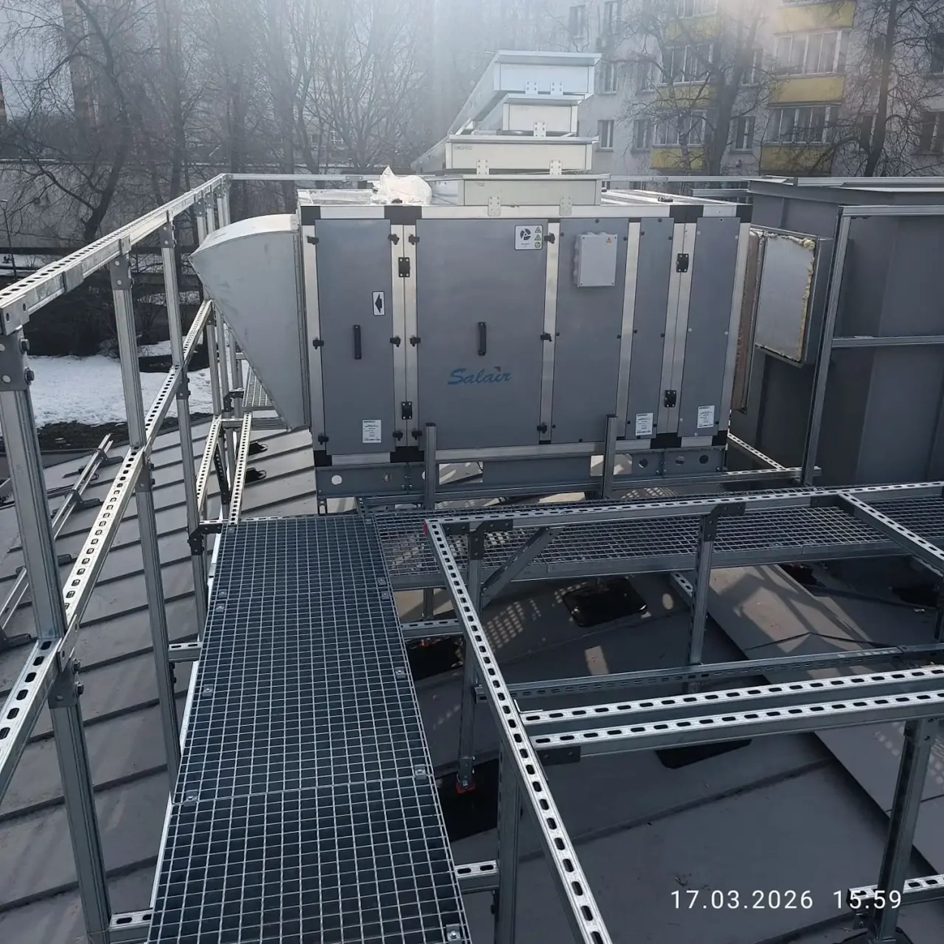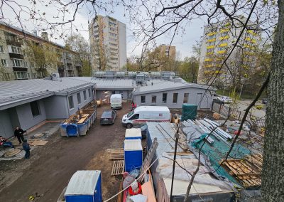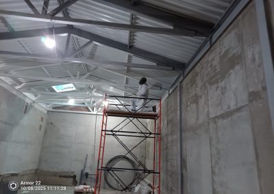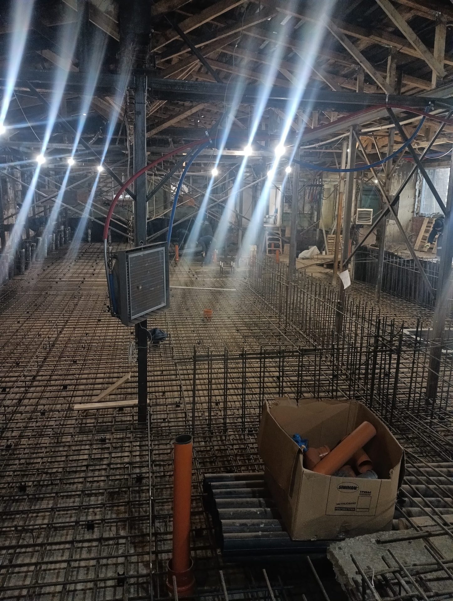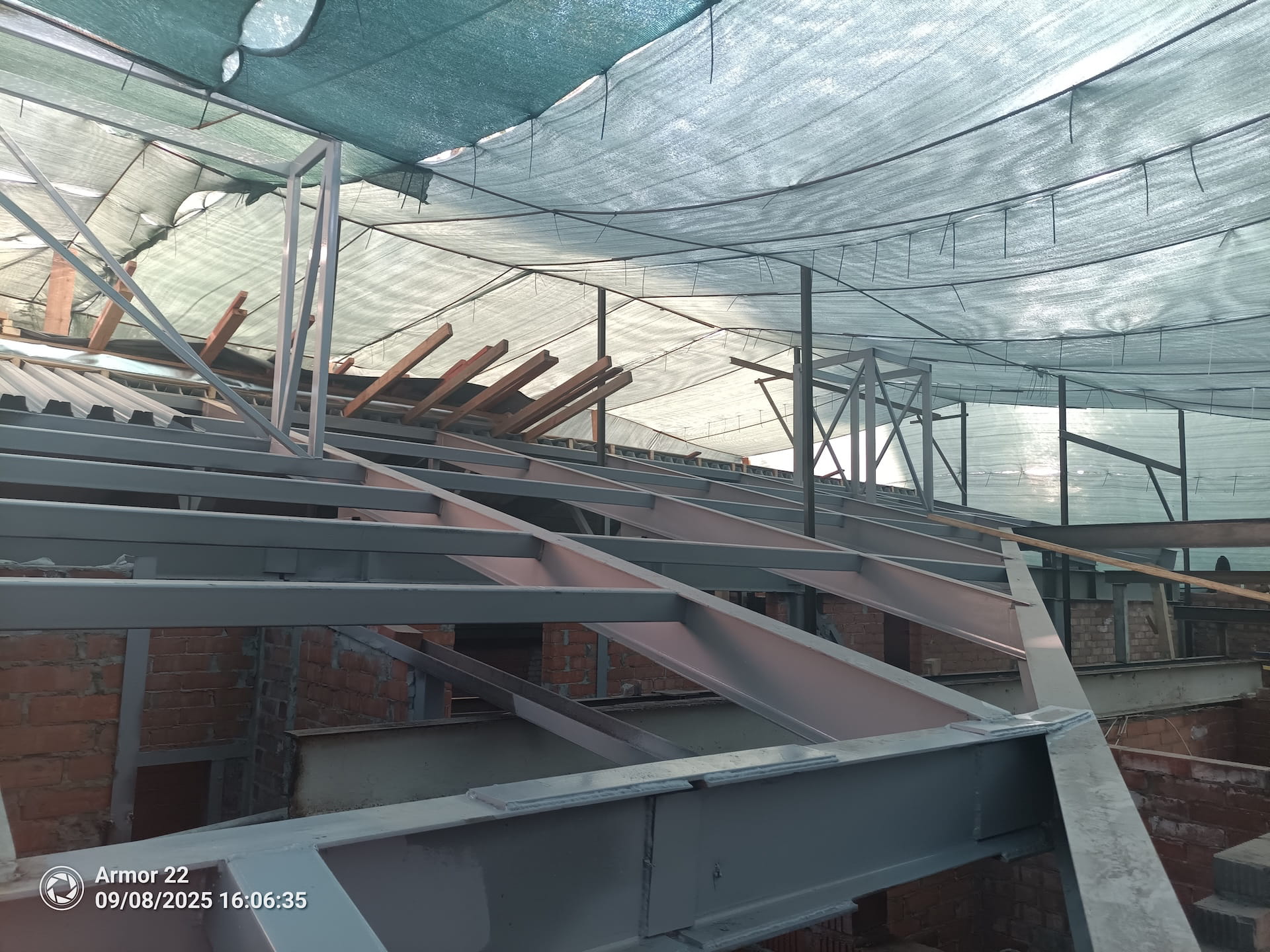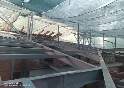 По завершении противоаварийного этапа смонтирован основной металлокаркас здания согласно тому КМ рабочей документации. Полностью переработана и заменена конструкция крыши, включая кровельное покрытие. Временные аварийные конструкции демонтированы, инвентаризированы и переданы заказчику.